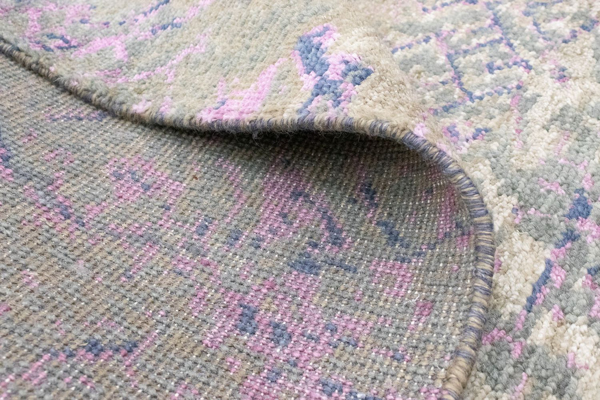 Dette tæppe er fremstillet udelukkende af håndspundet fåreuld. Manuel forarbejdning sikrer, at ulden bevarer sine naturlige egenskaber: den er slidstærk, elastisk og behageligt blød under fødderne.