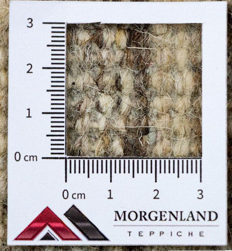 Den håndspundne uld giver tæppet en let struktureret overflade med diskant glans – et tegn på ægte håndværk. Materialet regulerer temperaturen, afviser snavs og skaber en hyggelig atmosfære.