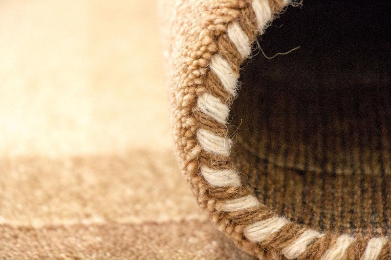 Dette tæppe er fremstillet udelukkende af håndspundet fåreuld. Manuel forarbejdning sikrer, at ulden bevarer sine naturlige egenskaber: den er slidstærk, elastisk og behageligt blød under fødderne.
