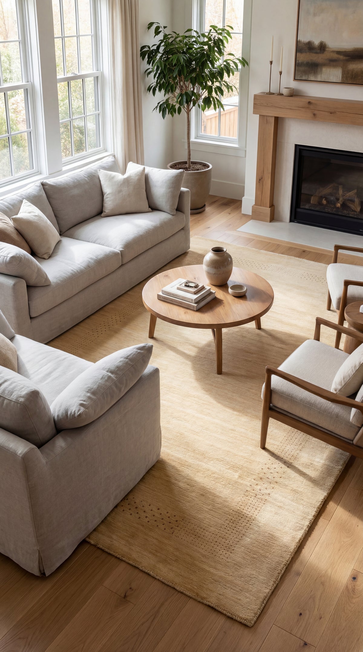 Den håndspundne uld giver tæppet en unik, let struktureret overflade med en diskret glans – et tegn på ægte håndværk. Samtidig virker materialet temperaturregulerende, smudsafvisende og skaber et behageligt indeklima.