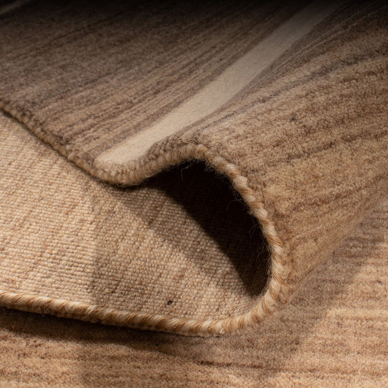 Dette tæppe er fremstillet udelukkende af håndspundet fåreuld. Manuel forarbejdning sikrer, at ulden bevarer sine naturlige egenskaber: den er slidstærk, elastisk og behageligt blød under fødderne.