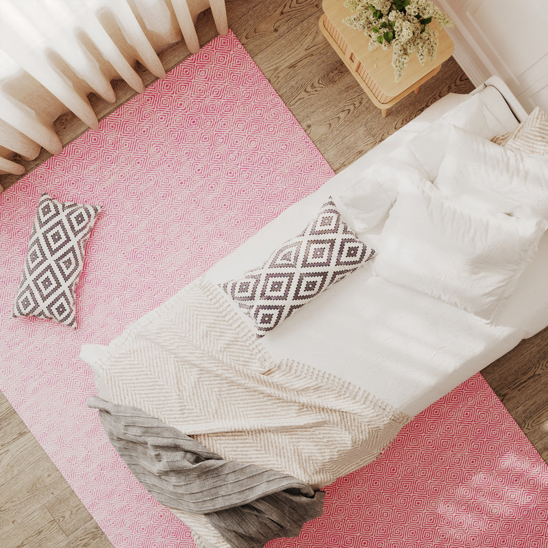 I de lyse farver pink, blå, turkis og gul fås "Alef"-tæppet til indendørs og udendørs brug som løber eller i en rektangulær form. Det er håndvævet af genanvendt PET og er derfor en miljøvenlig og stilfuld løsning til ethvert boligområde. Uanset om det er i køkkenet, på badeværelset, på terrassen eller altanen, er "Alef" kendetegnet ved sin alsidighed og holdbarhed. Tæppet er smudsafvisende, fnugfrit og særligt nemt at pleje takket være de bløde syntetiske fibre, hvilket gør det til den ideelle følgesvend for kæledyrsejere. Det giver ethvert rum, hvad enten det er indendørs eller udendørs, en behagelig og indbydende atmosfære. Oplev fordelene ved "Alef", og bring farve og komfort ind i dit hjem.