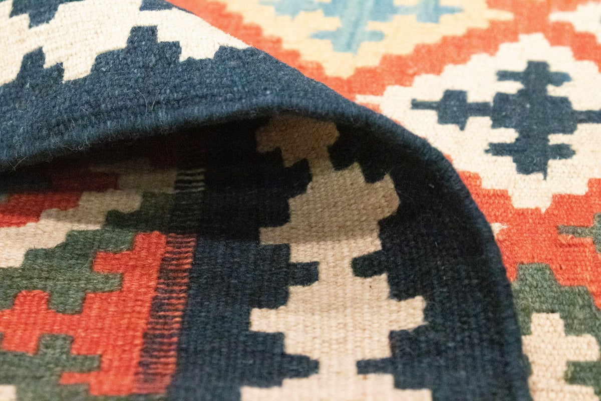 Denne kunstneriske Kelim - Oriental fanger øjet med sine trendy farver. Det giver en moderne og harmonisk elegance til din stue. I modsætning til klassiske orientalske tæpper er kelimtæpper traditionelt håndvævede i stedet for knyttede tæpper. I andre lande bruges disse tæpper også som puder eller gardiner. Disse tæpper har en tynd luv, og der anvendes 100 % jomfruuld til det faste yderstof, som i sagens natur er ekstremt let at passe og slidstærkt. Eksperter betegner kun tæpper, der er fremstillet i Tyrkiet, Kaukasusregionen, Persien, Afghanistan og Turkmenistan, som ægte kelim-tæpper. Ægte tæpper fra Orienten.