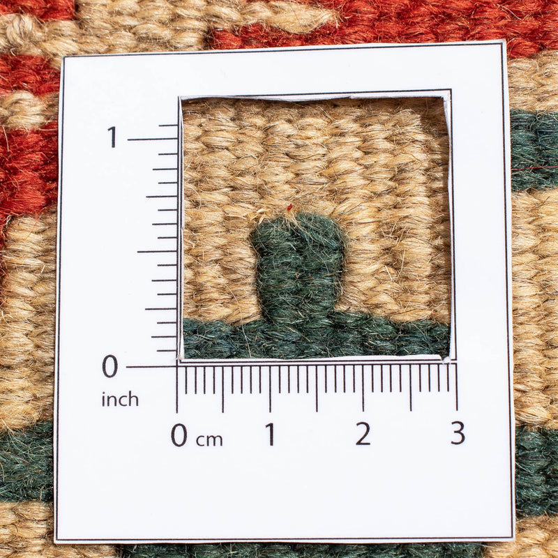 Dette tæppe er fremstillet udelukkende af håndspundet fåreuld. Manuel forarbejdning sikrer, at ulden bevarer sine naturlige egenskaber: den er slidstærk, elastisk og behageligt blød under fødderne.