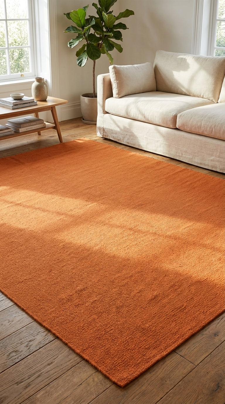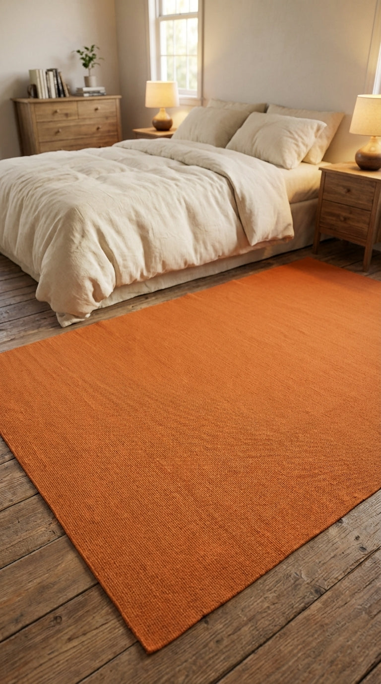 Den håndspundne uld giver tæppet en unik, let struktureret overflade med en diskret glans – et tegn på ægte håndværk. Samtidig virker materialet temperaturregulerende, smudsafvisende og skaber et behageligt indeklima.