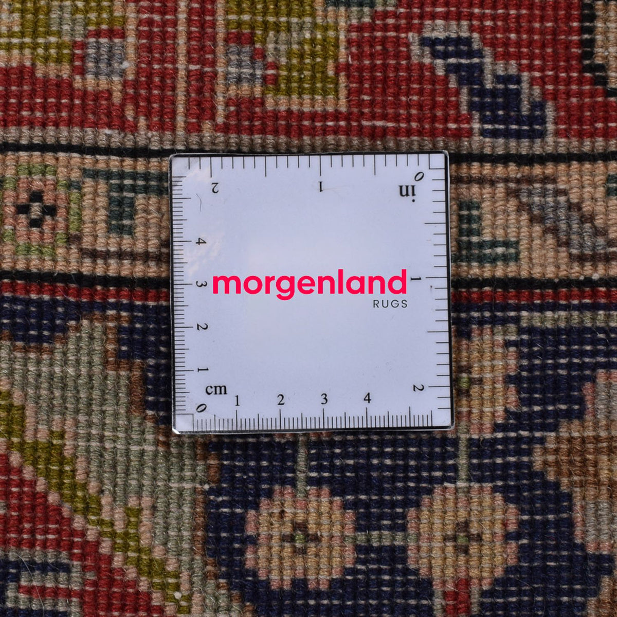 Traditionelt håndknoblede tæpper betragtes stadig som det ypperste inden for tæppetyper. Afhængig af knyttetypen udmærker de sig med bemærkelsesværdig holdbarhed og modstandsdygtighed – ofte varer de i flere generationer. Knutetætheden påvirker detaljeringsgraden i ornamenter og mønstre: jo tættere knuder, desto finere design. Denne præcision kræver ikke kun tid, men også stor håndværksmæssig færdighed og erfaring. Knutetæthed er en vigtig indikator for værdi, selvom høj tæthed ikke automatisk garanterer bedre kvalitet – grovere tæpper kan også være veludførte.