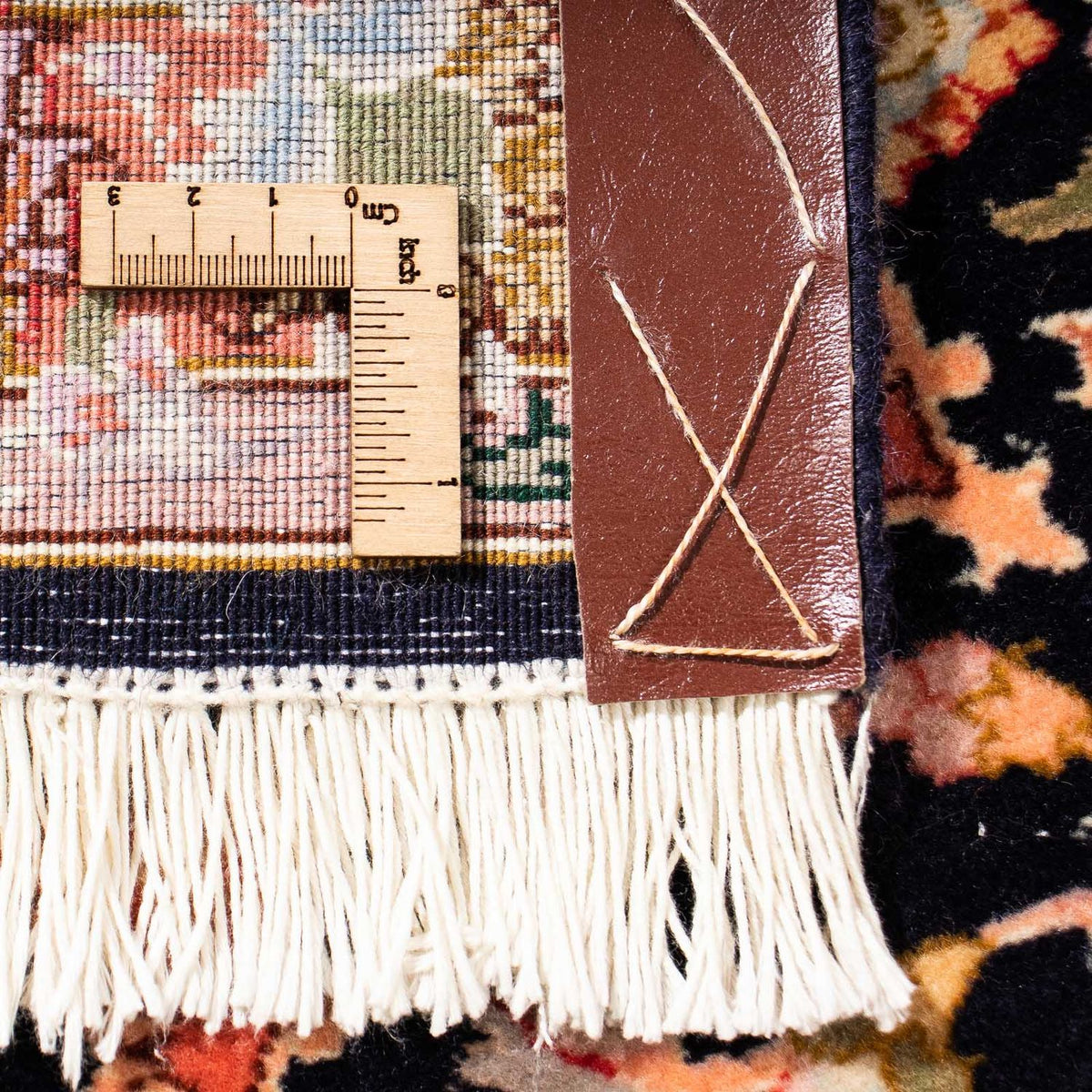 Dette fint knyttede persiske tæppe - Tabriz - Royal er lavet af korkuld af høj kvalitet i omhyggeligt og fejlfrit håndarbejde. Tabriz 40 Raj er en af de smukkeste i sin klasse. Dette tæppe skabte det gode ry for den persiske knyttekunst. Det er et meget populært tæppe fra et af de bedste knytteområder i Persien. De har ofte en stor, centralt placeret medaljon med smukke blomstermotiver, som er et typisk orientalsk motiv. Tabriz-tæpper har ofte den supplerende betegnelse Raj. Der skelnes mellem 40, 50, 60, 70 og 80 Raj. Jo højere tallet er, desto finere og tættere er tæppet knyttet. Raj er en kvalitetsbetegnelse og henviser til antallet af knuder på en bredde på ca. 70 mm. På grund af den tætte knudning er tæppet slidstærkt, ufølsomt og velegnet til ekstrem brug. Klassisk elegance og farveoverflod kendetegner dette ædle tæppe.