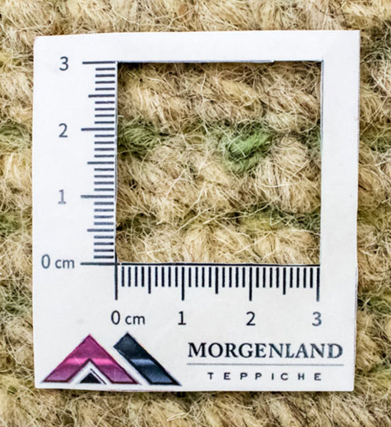 Den håndspundne uld giver tæppet en let struktureret overflade med diskant glans – et tegn på ægte håndværk. Materialet regulerer temperaturen, afviser snavs og skaber en hyggelig atmosfære.