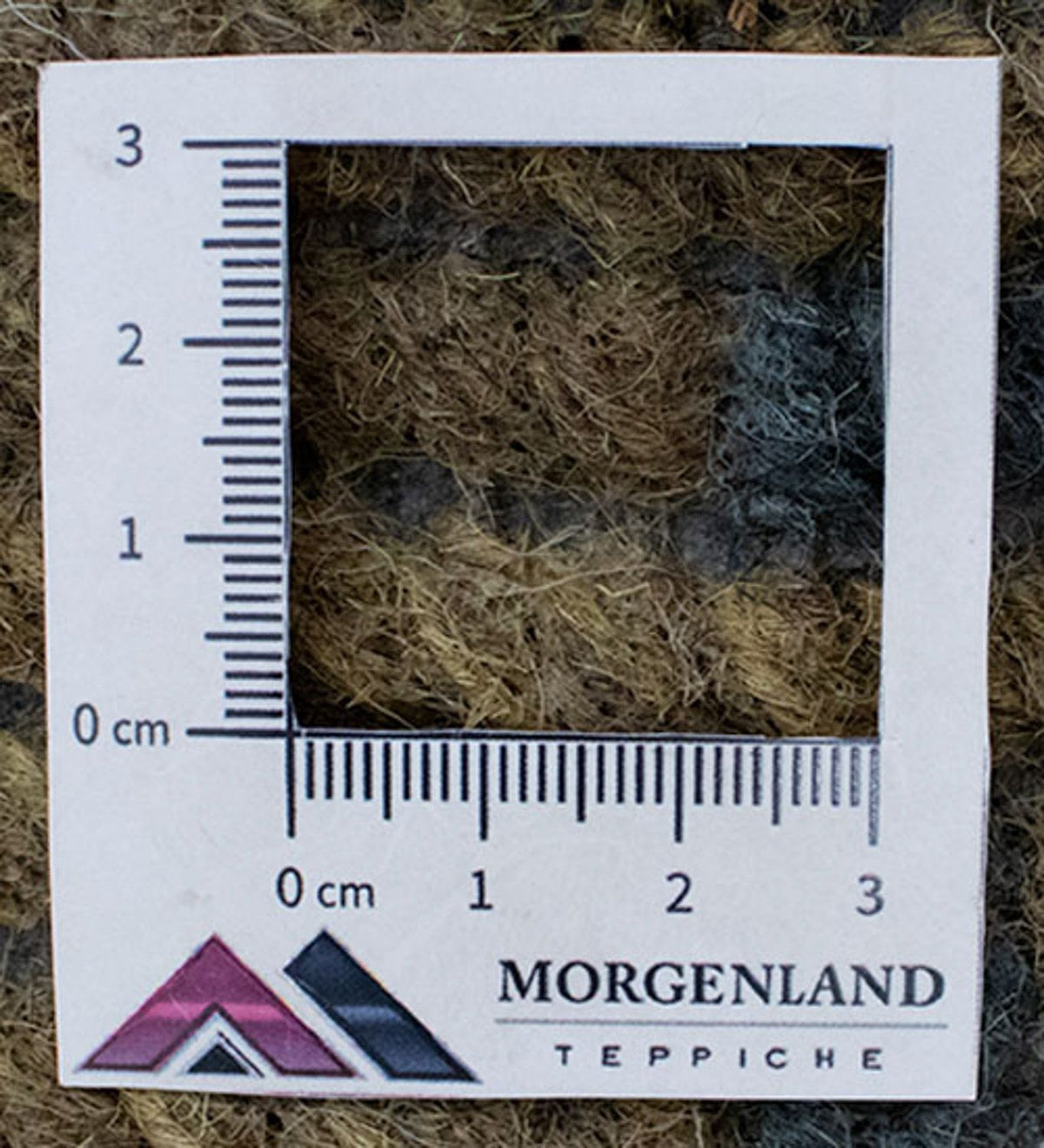 Den håndspundne uld giver tæppet en let struktureret overflade med diskant glans – et tegn på ægte håndværk. Materialet regulerer temperaturen, afviser snavs og skaber en hyggelig atmosfære.