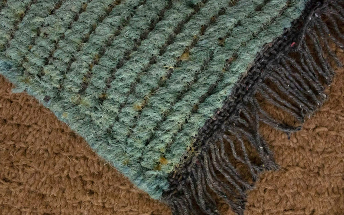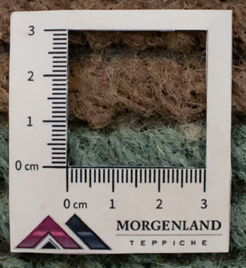 Dette tæppe er fremstillet udelukkende af håndspundet fåreuld. Manuel forarbejdning sikrer, at ulden bevarer sine naturlige egenskaber: den er slidstærk, elastisk og behageligt blød under fødderne.