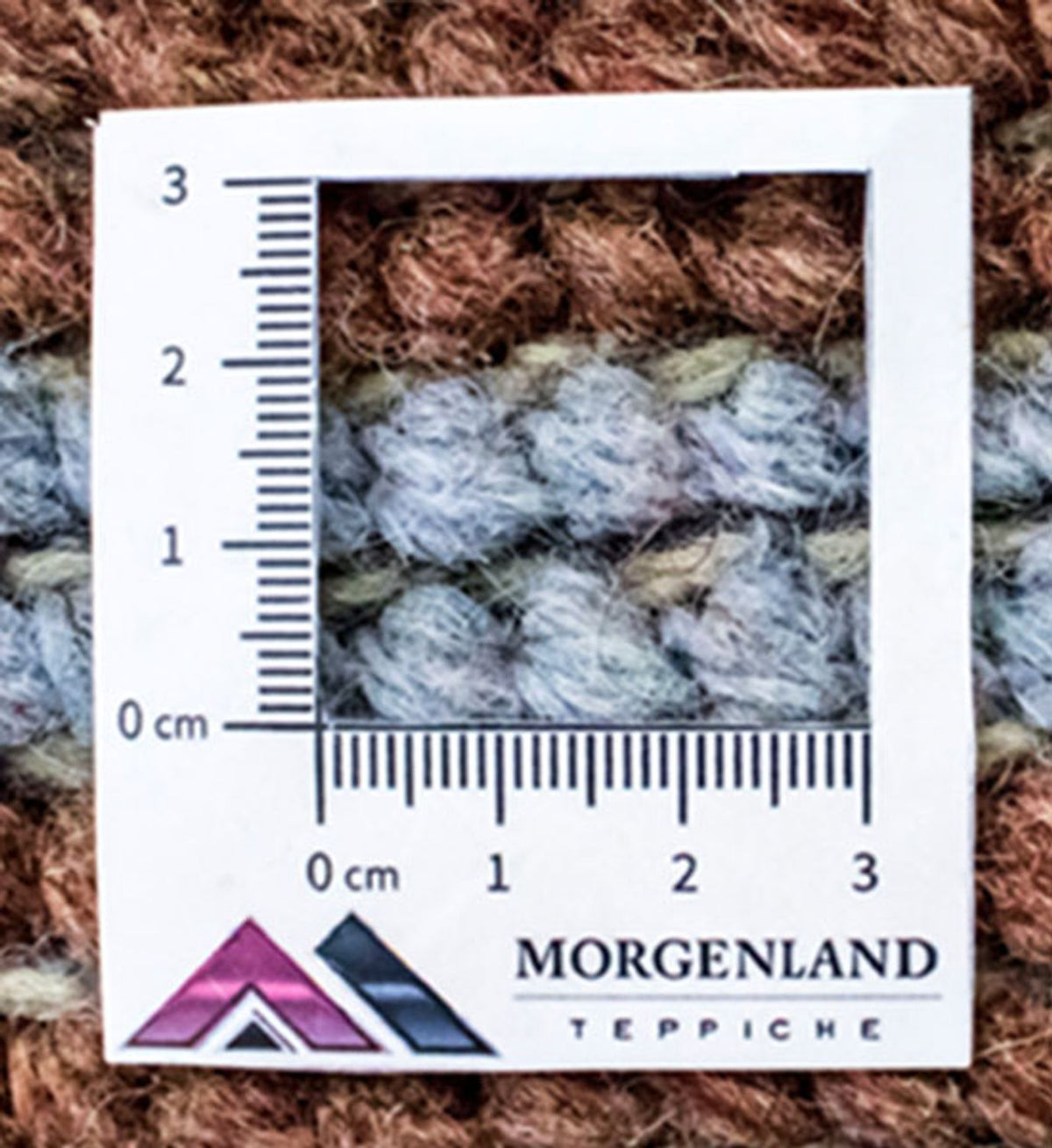 Den håndspundne uld giver tæppet en let struktureret overflade med diskant glans – et tegn på ægte håndværk. Materialet regulerer temperaturen, afviser snavs og skaber en hyggelig atmosfære.