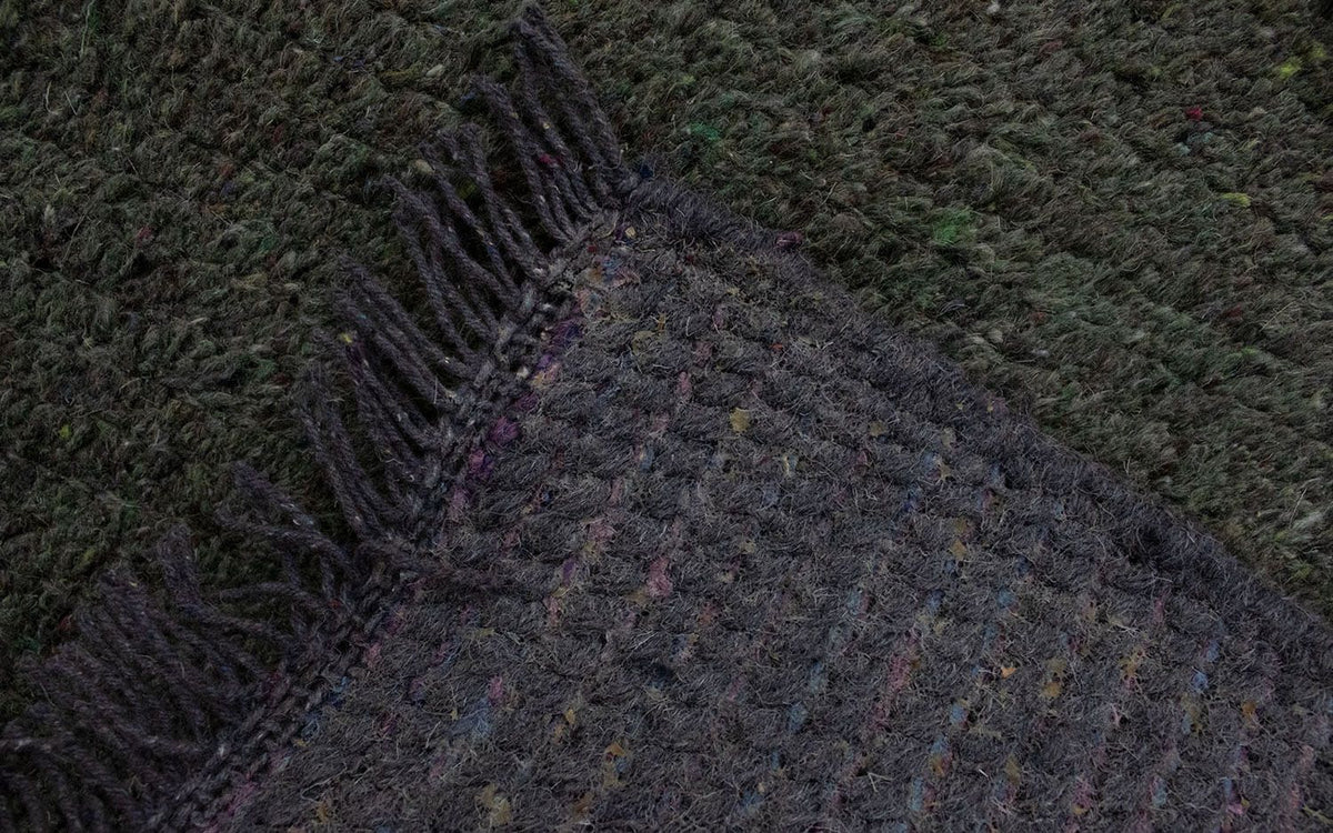 Dette tæppe er fremstillet udelukkende af håndspundet fåreuld. Manuel forarbejdning sikrer, at ulden bevarer sine naturlige egenskaber: den er slidstærk, elastisk og behageligt blød under fødderne.