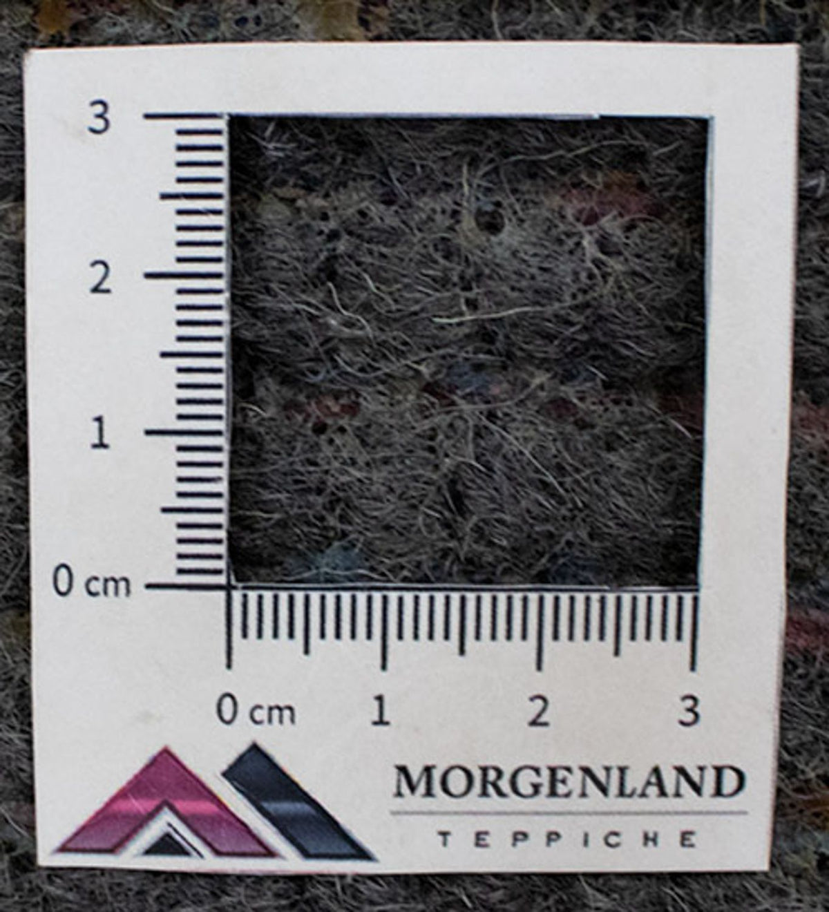 Den håndspundne uld giver tæppet en let struktureret overflade med diskant glans – et tegn på ægte håndværk. Materialet regulerer temperaturen, afviser snavs og skaber en hyggelig atmosfære.