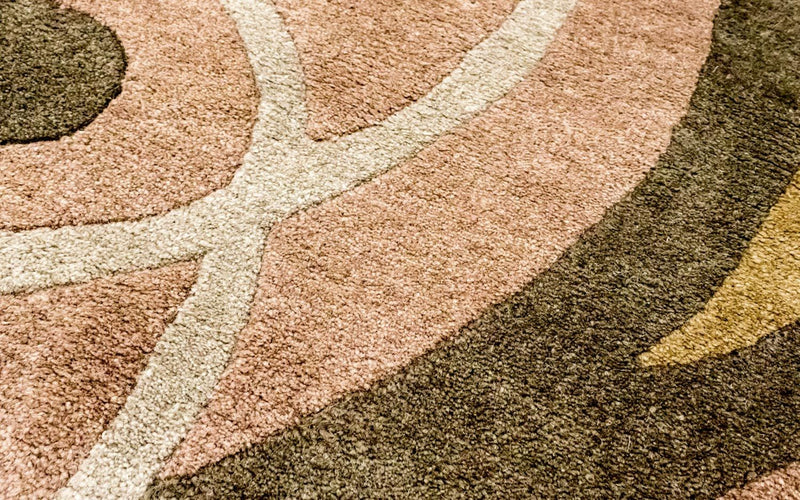 Dette tæppe er fremstillet udelukkende af håndspundet fåreuld. Manuel forarbejdning sikrer, at ulden bevarer sine naturlige egenskaber: den er slidstærk, elastisk og behageligt blød under fødderne.