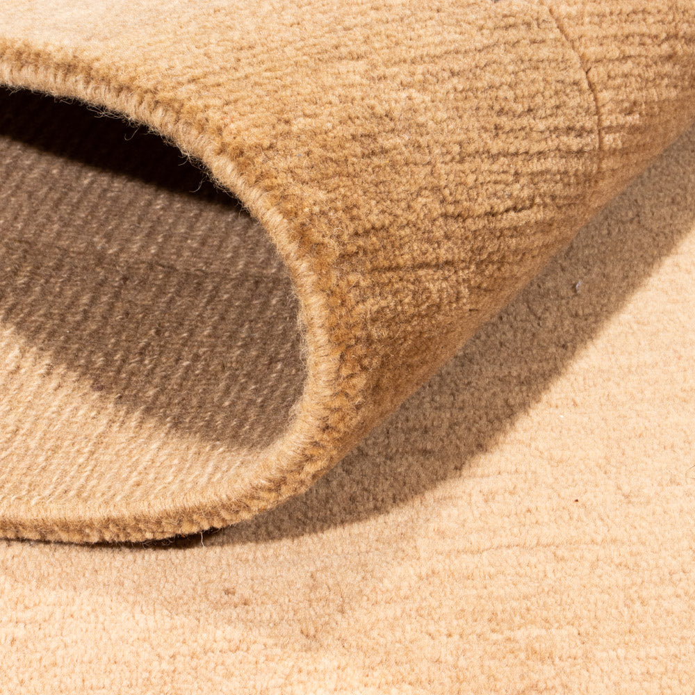 Dette tæppe er fremstillet udelukkende af håndspundet fåreuld. Manuel forarbejdning sikrer, at ulden bevarer sine naturlige egenskaber: den er slidstærk, elastisk og behageligt blød under fødderne.