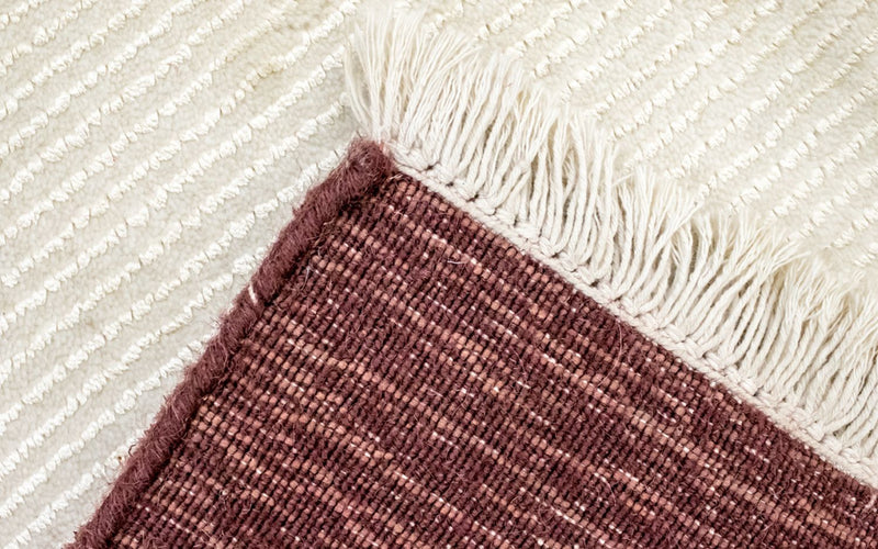 Dette tæppe er fremstillet udelukkende af håndspundet fåreuld. Manuel forarbejdning sikrer, at ulden bevarer sine naturlige egenskaber: den er slidstærk, elastisk og behageligt blød under fødderne.