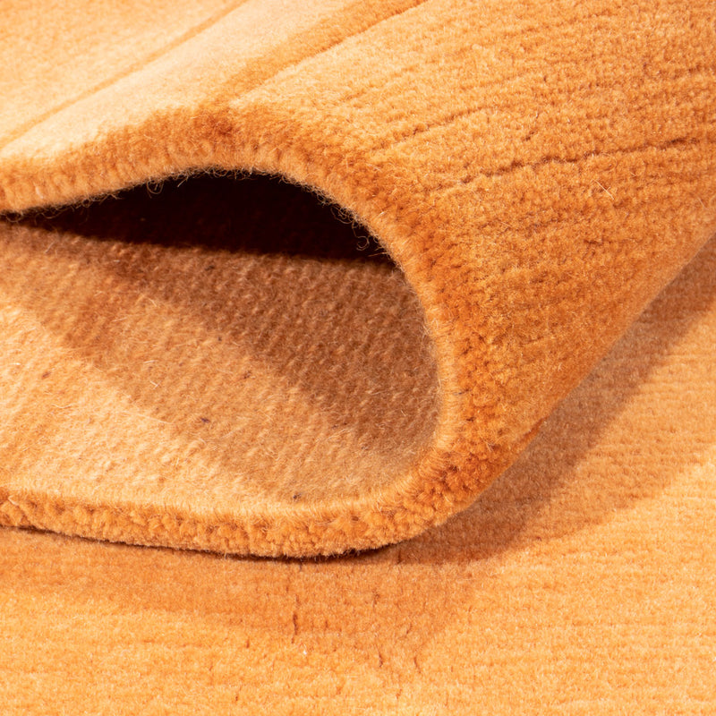 Den håndspundne uld giver tæppet en let struktureret overflade med diskant glans – et tegn på ægte håndværk. Materialet regulerer temperaturen, afviser snavs og skaber en hyggelig atmosfære.
