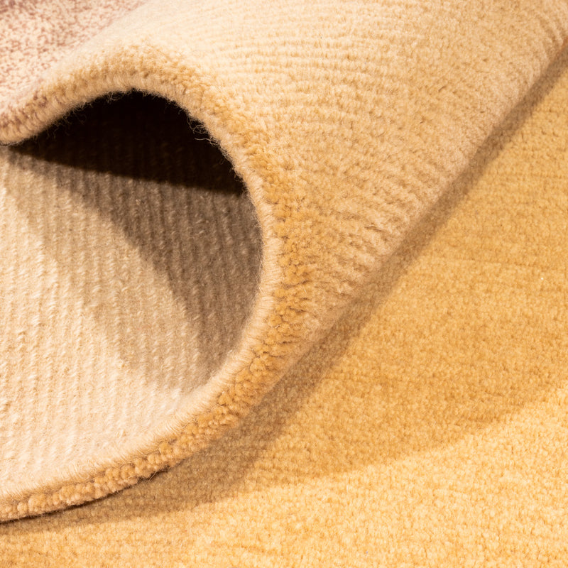 Dette tæppe er fremstillet udelukkende af håndspundet fåreuld. Manuel forarbejdning sikrer, at ulden bevarer sine naturlige egenskaber: den er slidstærk, elastisk og behageligt blød under fødderne.