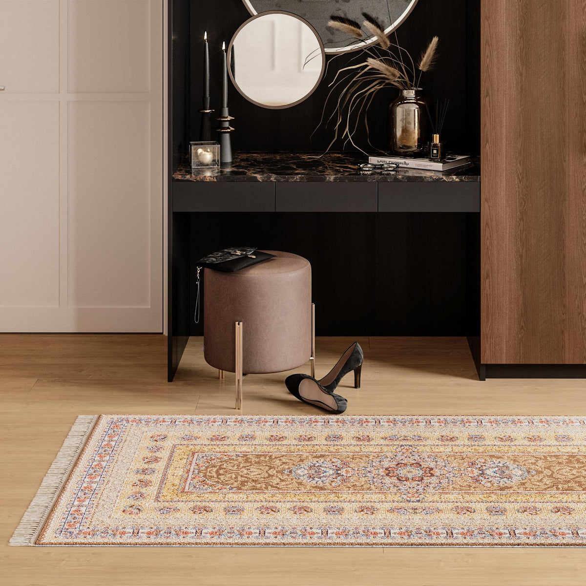 Orientalske tæpper - altid populære og kan integreres i mange indretningsstile! Traditionelt er disse betagende eksempler på det bedste håndværk blevet knyttet og vævet i hånden i Afrika, Mellemøsten og Centralasien. Mønstrene er meget stilfulde i rige farver - fra rød til gul til blå, alt er der! Desuden gør den særligt tætte og fine knudning på ca. 160.000 til 202.500 knuder pr. kvadratmeter disse tæpper meget nemme at vedligeholde, stødlydsabsorberende og holdbare.