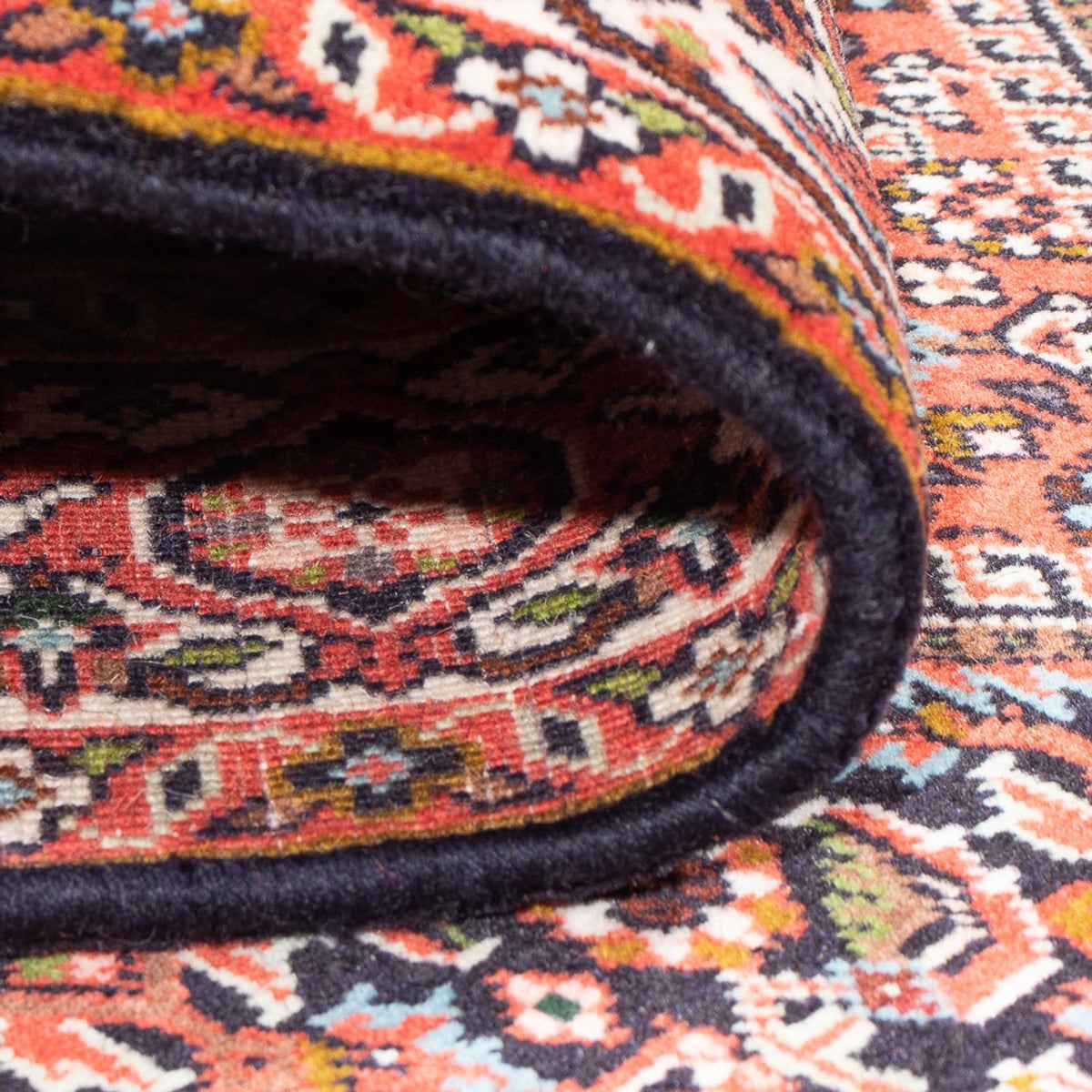 Et stykke af Orienten til dit hjem! Dette persiske tæppe Bidjar - Royal (også: Bidjar Bukan) tæppe kommer fra en lille kurdisk by i det vestlige Persien og er kendt for sin holdbarhed og robusthed på grund af dets særligt stærke vævning med den traditionelle tyrkiske knude. Denne teknik gør tæppet smudsafvisende og garanterer dets holdbarhed: tæppets luv er presset så tæt sammen med en kam, at den står næsten lodret opad. Herati-mønstret er populært som design, men også medaljon- og blomstermønstre forekommer. De persiske tæpper Bidjar - Royal er fremstillet af 100% korkuld og hører til kvalitetsniveau 3 i deres forarbejdning og har dermed en meget høj og fin kvalitet. Det gør dem perfekte som en investering eller langsigtet kapitalinvestering.