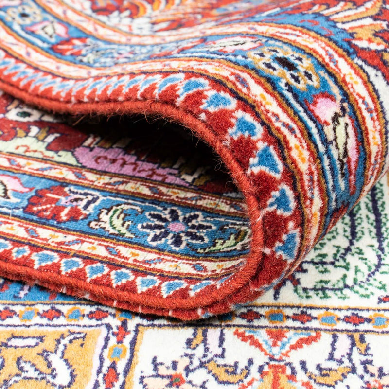Det håndknappede tæppe fra Moud, en af de største byer i Iran, er et rigtigt kunstværk. Han var lavet af ren naturlig uld og omhyggeligt forbundet af erfarne håndværkere. Disse tæpper med høj kvalitet er kendt for deres ekstraordinære størrelser og deres ekstremt høje kvalitet uld. Foruden deres skønhed er Moud -tæpper også ekstremt lette at pleje. De kan simpelthen rengøres med en støvsuger eller en kost for at fjerne snavs og støv. Om nødvendigt kan tæppet også rengøres med et mildt rengøringsmiddel og vand. På grund af deres høje kvalitet og holdbare karakter er Moud -tæpper en fremragende investering for hver tæppelsker. De er ikke kun en dejlig tilføjelse til hvert hjem, men også et let og praktisk valg. Uanset om du vælger en klassisk eller moderne stil, giver et Moud -tæppe dit hjem en uforlignelig elegance og stil.