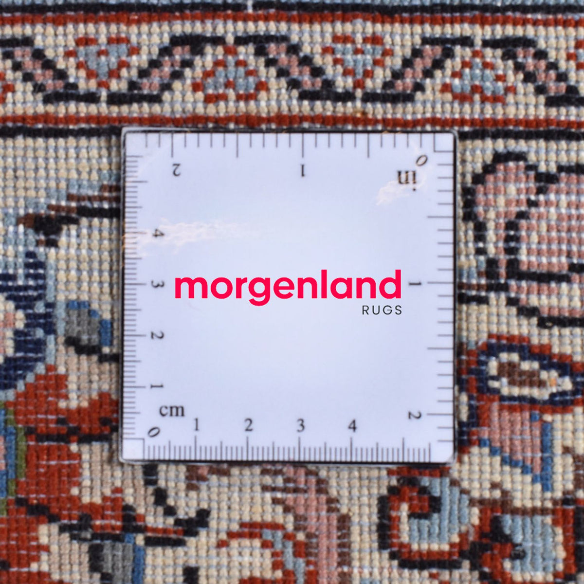 Traditionelt håndknoblede tæpper betragtes stadig som det ypperste inden for tæppetyper. Afhængig af knyttetypen udmærker de sig med bemærkelsesværdig holdbarhed og modstandsdygtighed – ofte varer de i flere generationer. Knutetætheden påvirker detaljeringsgraden i ornamenter og mønstre: jo tættere knuder, desto finere design. Denne præcision kræver ikke kun tid, men også stor håndværksmæssig færdighed og erfaring. Knutetæthed er en vigtig indikator for værdi, selvom høj tæthed ikke automatisk garanterer bedre kvalitet – grovere tæpper kan også være veludførte.
