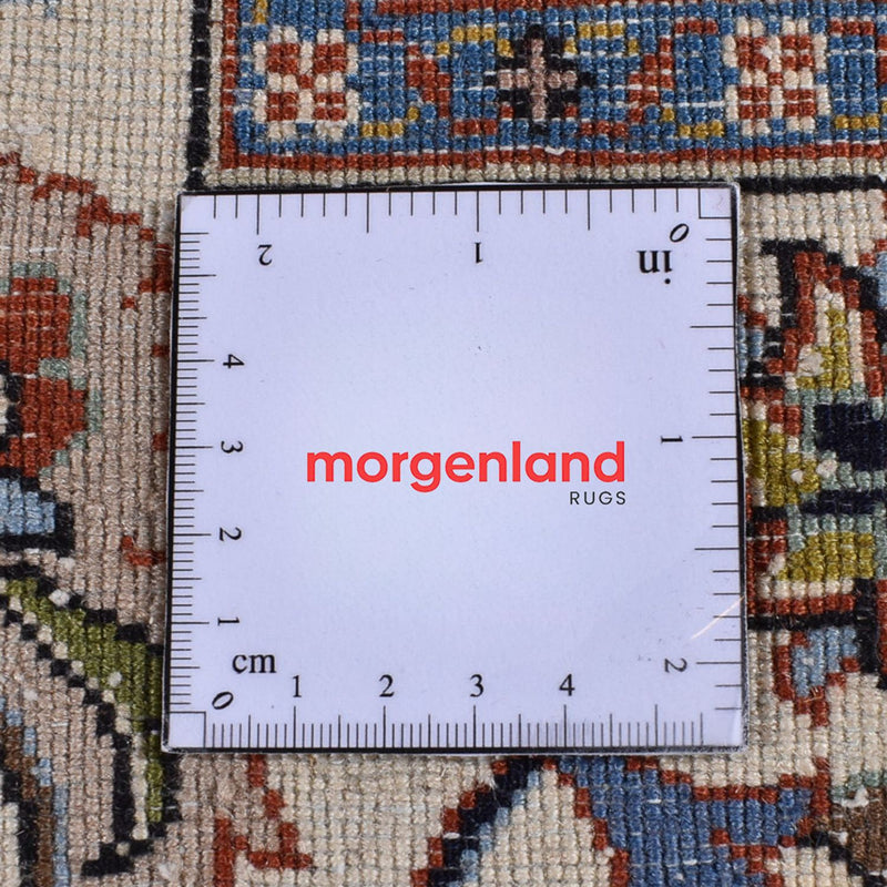 Traditionelt håndknoblede tæpper betragtes stadig som det ypperste inden for tæppetyper. Afhængig af knyttetypen udmærker de sig med bemærkelsesværdig holdbarhed og modstandsdygtighed – ofte varer de i flere generationer. Knutetætheden påvirker detaljeringsgraden i ornamenter og mønstre: jo tættere knuder, desto finere design. Denne præcision kræver ikke kun tid, men også stor håndværksmæssig færdighed og erfaring. Knutetæthed er en vigtig indikator for værdi, selvom høj tæthed ikke automatisk garanterer bedre kvalitet – grovere tæpper kan også være veludførte.