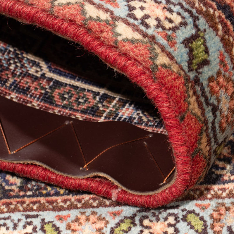 Senneh-tæppet er håndlavet og består af robuste materialer. Det er vævet i Kurdistan-provinsen i den vestlige del af Iran og er særligt holdbart og slidstærkt. Det detaljerede mønster og den elastiske struktur gør det til et perfekt boligelement til stærkt trafikerede rum som f.eks. gangen eller stuen.