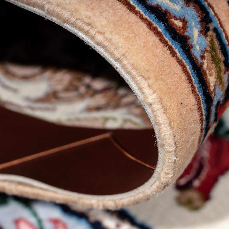 Dette smukke orientalske tæppe - Isfahan - Indus er modelleret efter de traditionelle persiske tæpper fra Isfahan og er håndknyttet af erfarne tæppevævere i Indien. Dette persiske tæppe - Isfahan - Premium bringer luksus ind i dit hjem! Dette tæppe er lavet af 100% silke og tilhører det højeste kvalitetsniveau 4. Dens knudetæthed på ca. 890.000 til 1.000.000 knuder pr. kvadratmeter lover den bedste kvalitet og holdbarhed. Tæpper fra Isfahan må betragtes som udsøgt kunsthåndværk. Isfahan er nok den smukkeste by i islam, og dette tæppe er en vigtig del af den. Kunstneriske medaljoner, områder fyldt med vaser, fugle eller vilde dyr pryder Isfahan-tæppet og gør det til et af de mest populære og samtidig det persiske tæppe af højeste kvalitet med sin sans for detaljer, høje knudetæthed og silkeagtige glans. Materialer af høj kvalitet er en selvfølge. Det er derfor, at den ofte har en silkekreds. Selv i dag er mange Isfahan-tæpper forsynet med signaturer, der er knyttet ind i kanten. Man kan kigge på et tæppe som dette i timevis og glemme tiden - en oplevelse, som ikke kan indfanges på et foto.