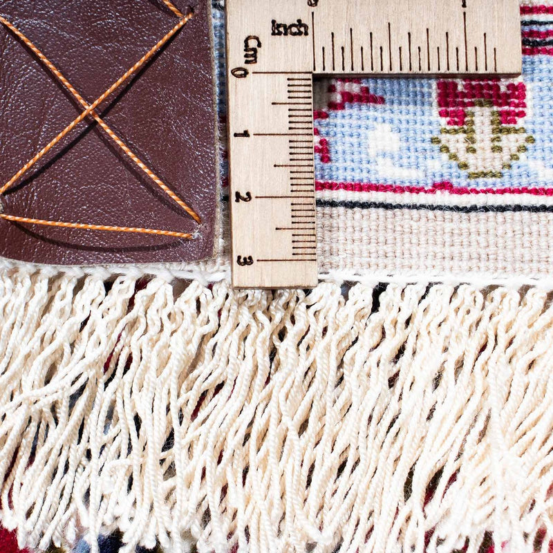 Dette smukke orientalske tæppe - Isfahan - Indus er modelleret efter de traditionelle persiske tæpper fra Isfahan og er håndknyttet af erfarne tæppevævere i Indien. Dette persiske tæppe - Isfahan - Premium bringer luksus ind i dit hjem! Dette tæppe er lavet af 100% silke og tilhører det højeste kvalitetsniveau 4. Dens knudetæthed på ca. 890.000 til 1.000.000 knuder pr. kvadratmeter lover den bedste kvalitet og holdbarhed. Tæpper fra Isfahan må betragtes som udsøgt kunsthåndværk. Isfahan er nok den smukkeste by i islam, og dette tæppe er en vigtig del af den. Kunstneriske medaljoner, områder fyldt med vaser, fugle eller vilde dyr pryder Isfahan-tæppet og gør det til et af de mest populære og samtidig det persiske tæppe af højeste kvalitet med sin sans for detaljer, høje knudetæthed og silkeagtige glans. Materialer af høj kvalitet er en selvfølge. Det er derfor, at den ofte har en silkekreds. Selv i dag er mange Isfahan-tæpper forsynet med signaturer, der er knyttet ind i kanten. Man kan kigge på et tæppe som dette i timevis og glemme tiden - en oplevelse, som ikke kan indfanges på et foto.