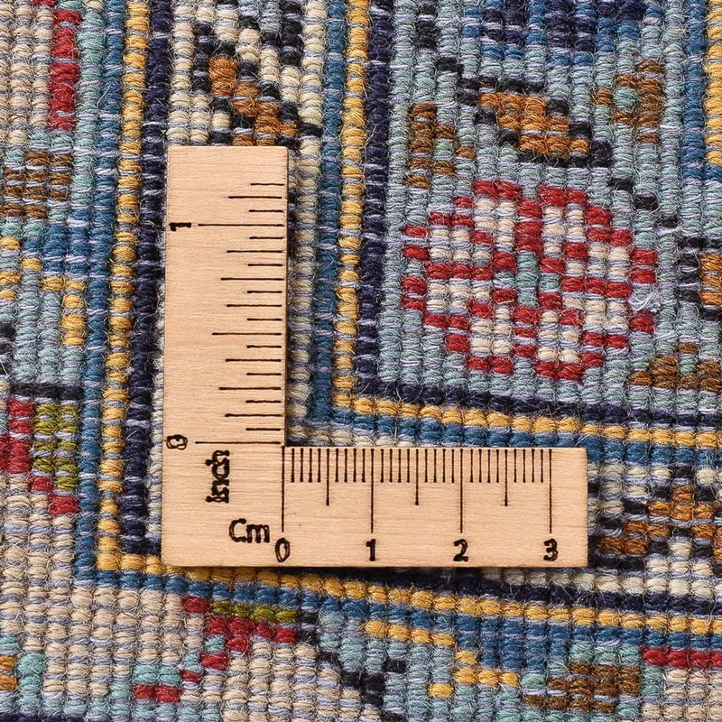 Dette tæppe er fremstillet udelukkende af håndspundet fåreuld. Manuel forarbejdning sikrer, at ulden bevarer sine naturlige egenskaber: den er slidstærk, elastisk og behageligt blød under fødderne.
