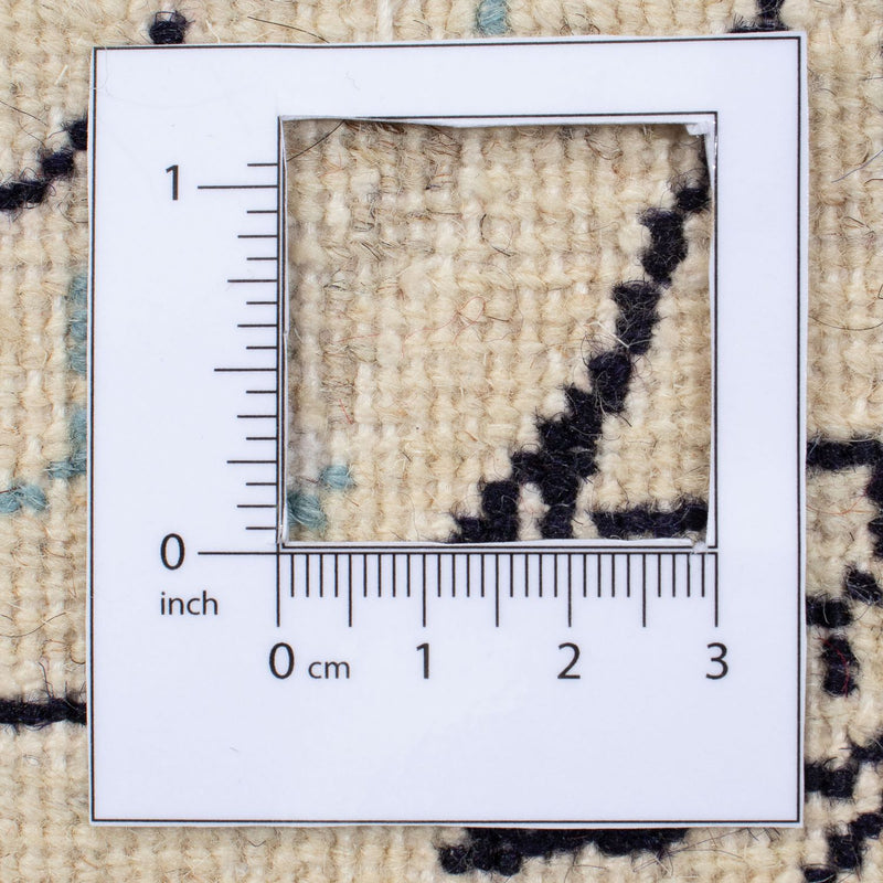 Dette tæppe er fremstillet udelukkende af håndspundet fåreuld. Manuel forarbejdning sikrer, at ulden bevarer sine naturlige egenskaber: den er slidstærk, elastisk og behageligt blød under fødderne.