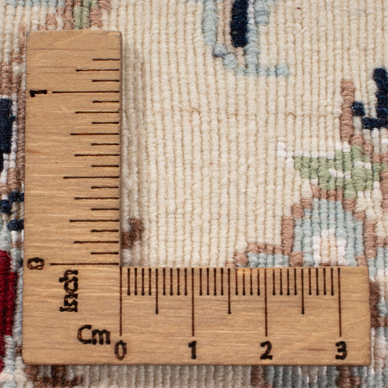 Dette smukke og sjældent fint vævede persiske tæppe - Nain - Premium hører til det højeste kvalitetsniveau 4 med ca. 890.000 til 1.000.000 knuder pr. kvadratmeter. Den fine Nain 6La har sin berømmelse at takke for sin oprindelse. Det anses i hele Orienten for at være et persisk tæppe af særlig høj kvalitet. Nain-tæpper er knyttede med en enestående finhed. Som bunmateriale anvendes normalt den bedste, fløjlsagtige korkuld, og der anvendes altid silke, så der kan laves et nøjagtigt mønster af medaljoner og all-over-mønstre. Nain er opdelt i 4 kvalitetsniveauer, som er angivet med "La". 4La, 6La, 9La, 12La. Dette er en kvalitetsbetegnelse og henviser til antallet af trådlag i hver kædetråd. Jo lavere det angivne tal er, jo finere og tættere er tæppet. Nains er blandt de smukkeste i verden. De er meget populære blandt samlere. På grund af deres enkle elegance passer Nains også ind i moderne interiør.