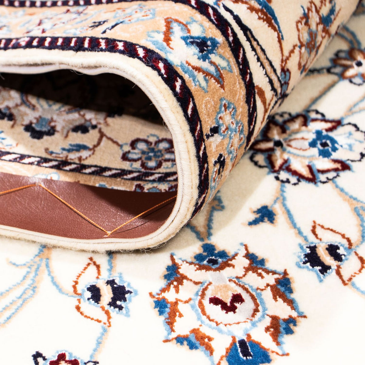 Dette smukke og sjældent fint vævede persiske tæppe - Nain - Premium hører til det højeste kvalitetsniveau 4 med ca. 890.000 til 1.000.000 knuder pr. kvadratmeter. Den fine Nain 6La har sin berømmelse at takke for sin oprindelse. Det anses i hele Orienten for at være et persisk tæppe af særlig høj kvalitet. Nain-tæpper er knyttede med en enestående finhed. Som bunmateriale anvendes normalt den bedste, fløjlsagtige korkuld, og der anvendes altid silke, så der kan laves et nøjagtigt mønster af medaljoner og all-over-mønstre. Nain er opdelt i 4 kvalitetsniveauer, som er angivet med "La". 4La, 6La, 9La, 12La. Dette er en kvalitetsbetegnelse og henviser til antallet af trådlag i hver kædetråd. Jo lavere det angivne tal er, jo finere og tættere er tæppet. Nains er blandt de smukkeste i verden. De er meget populære blandt samlere. På grund af deres enkle elegance passer Nains også ind i moderne interiør.