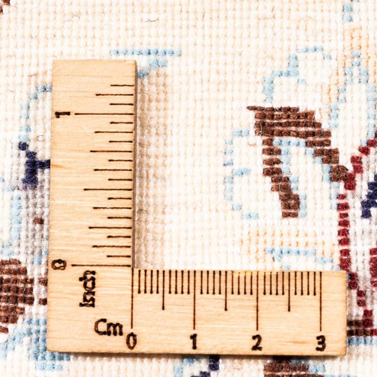 Dette smukke og sjældent fint vævede persiske tæppe - Nain - Premium hører til det højeste kvalitetsniveau 4 med ca. 890.000 til 1.000.000 knuder pr. kvadratmeter. Den fine Nain 6La har sin berømmelse at takke for sin oprindelse. Det anses i hele Orienten for at være et persisk tæppe af særlig høj kvalitet. Nain-tæpper er knyttede med en enestående finhed. Som bunmateriale anvendes normalt den bedste, fløjlsagtige korkuld, og der anvendes altid silke, så der kan laves et nøjagtigt mønster af medaljoner og all-over-mønstre. Nain er opdelt i 4 kvalitetsniveauer, som er angivet med "La". 4La, 6La, 9La, 12La. Dette er en kvalitetsbetegnelse og henviser til antallet af trådlag i hver kædetråd. Jo lavere det angivne tal er, jo finere og tættere er tæppet. Nains er blandt de smukkeste i verden. De er meget populære blandt samlere. På grund af deres enkle elegance passer Nains også ind i moderne interiør.