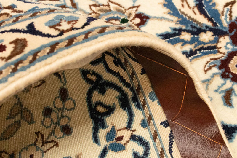 Denne fint håndknyttede Nain 9La vil passe perfekt ind i dit hjem. Den er fremstillet af korkuld og den fineste silke, hvilket gør den særlig blød under fødderne og skaber en luksuriøs atmosfære med sin glans. Det persiske tæppe - Nain - Royal hører til det høje kvalitetsniveau 3 med ca. 250.000 til 360.000 knuder pr. kvadratmeter. Det betyder, at den er meget tæt og dermed garanterer en lang levetid. Uanset hvilken indretningsstil du foretrækker i dit hjem, vil du altid træffe det rigtige valg med et Nain-tæppe.