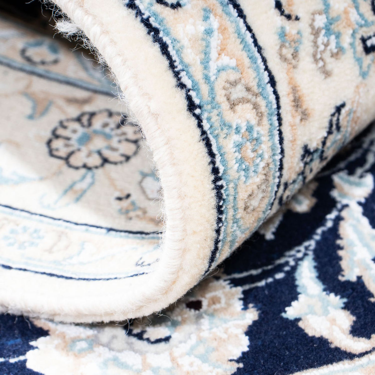 Denne fint håndknyttede Nain 9La vil passe perfekt ind i dit hjem. Den er fremstillet af korkuld og den fineste silke, hvilket gør den særlig blød under fødderne og skaber en luksuriøs atmosfære med sin glans. Det persiske tæppe - Nain - Royal hører til det høje kvalitetsniveau 3 med ca. 250.000 til 360.000 knuder pr. kvadratmeter. Det betyder, at den er meget tæt og dermed garanterer en lang levetid. Uanset hvilken indretningsstil du foretrækker i dit hjem, vil du altid træffe det rigtige valg med et Nain-tæppe.
