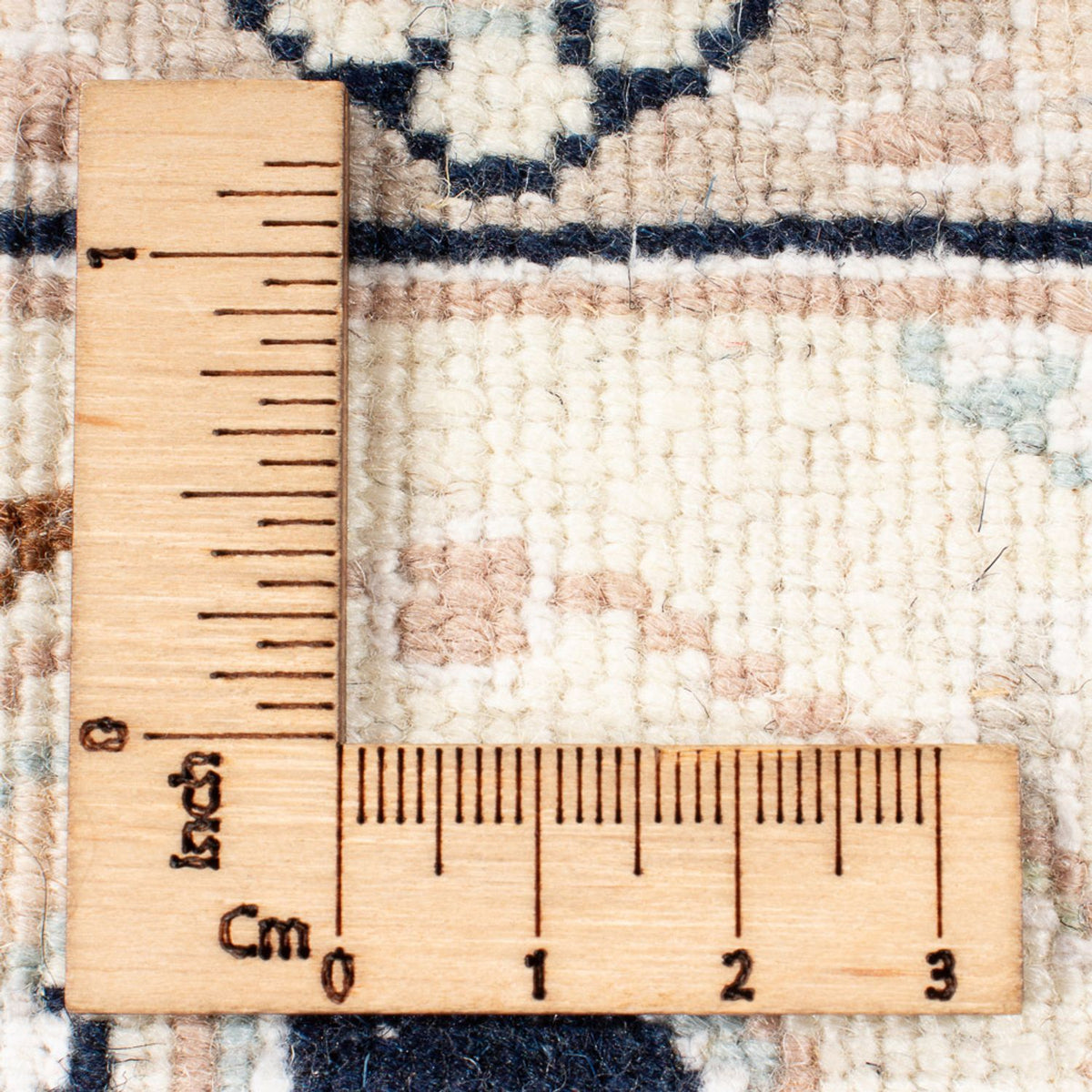 Denne fint håndknyttede Nain 9La vil passe perfekt ind i dit hjem. Den er fremstillet af korkuld og den fineste silke, hvilket gør den særlig blød under fødderne og skaber en luksuriøs atmosfære med sin glans. Det persiske tæppe - Nain - Royal hører til det høje kvalitetsniveau 3 med ca. 250.000 til 360.000 knuder pr. kvadratmeter. Det betyder, at den er meget tæt og dermed garanterer en lang levetid. Uanset hvilken indretningsstil du foretrækker i dit hjem, vil du altid træffe det rigtige valg med et Nain-tæppe.