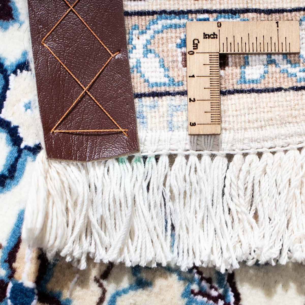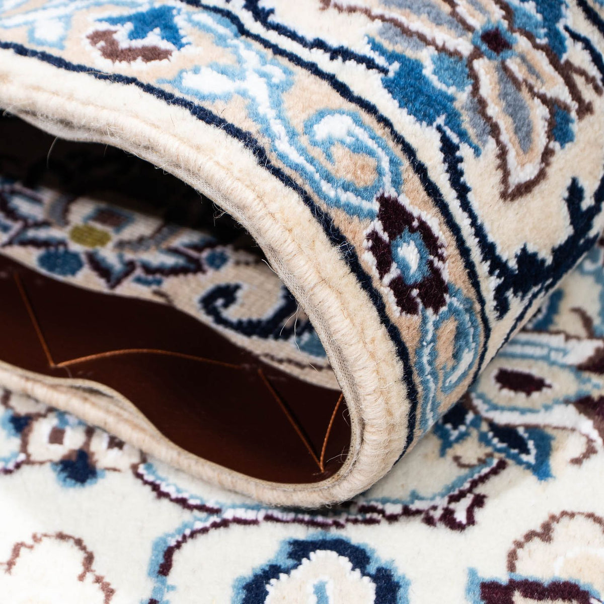Denne fint håndknyttede Nain 9La vil passe perfekt ind i dit hjem. Den er fremstillet af korkuld og den fineste silke, hvilket gør den særlig blød under fødderne og skaber en luksuriøs atmosfære med sin glans. Det persiske tæppe - Nain - Royal hører til det høje kvalitetsniveau 3 med ca. 250.000 til 360.000 knuder pr. kvadratmeter. Det betyder, at den er meget tæt og dermed garanterer en lang levetid. Uanset hvilken indretningsstil du foretrækker i dit hjem, vil du altid træffe det rigtige valg med et Nain-tæppe.