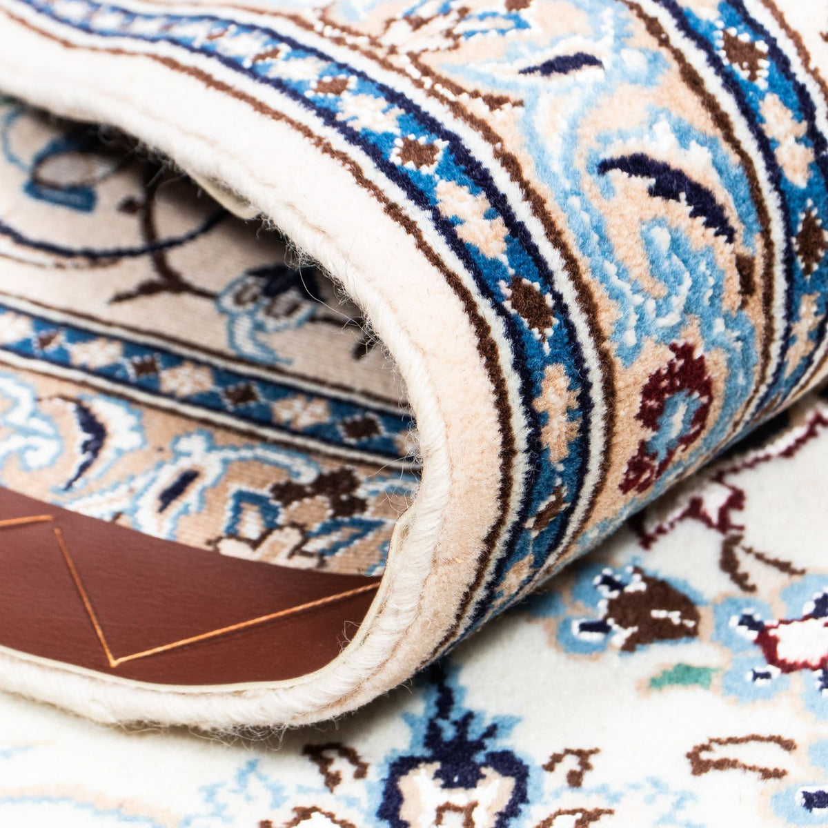 Denne fint håndknyttede Nain 9La vil passe perfekt ind i dit hjem. Den er fremstillet af korkuld og den fineste silke, hvilket gør den særlig blød under fødderne og skaber en luksuriøs atmosfære med sin glans. Det persiske tæppe - Nain - Royal hører til det høje kvalitetsniveau 3 med ca. 250.000 til 360.000 knuder pr. kvadratmeter. Det betyder, at den er meget tæt og dermed garanterer en lang levetid. Uanset hvilken indretningsstil du foretrækker i dit hjem, vil du altid træffe det rigtige valg med et Nain-tæppe.