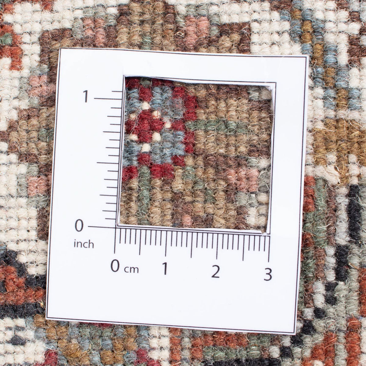 Dette tæppe er fremstillet udelukkende af håndspundet fåreuld. Manuel forarbejdning sikrer, at ulden bevarer sine naturlige egenskaber: den er slidstærk, elastisk og behageligt blød under fødderne.