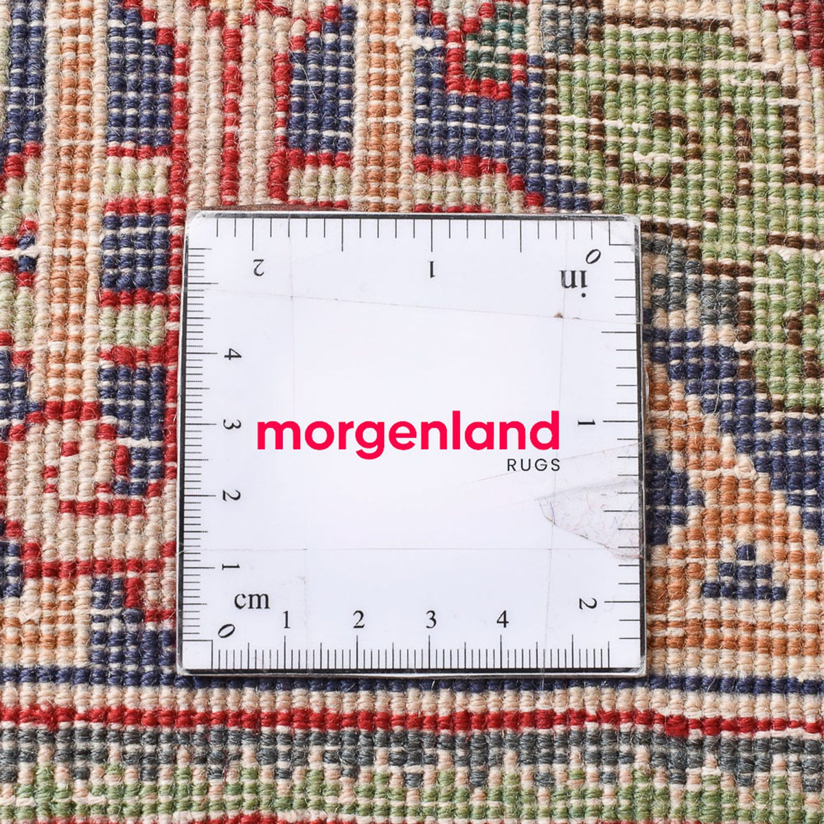 Traditionelt håndknoblede tæpper betragtes stadig som det ypperste inden for tæppetyper. Afhængig af knyttetypen udmærker de sig med bemærkelsesværdig holdbarhed og modstandsdygtighed – ofte varer de i flere generationer. Knutetætheden påvirker detaljeringsgraden i ornamenter og mønstre: jo tættere knuder, desto finere design. Denne præcision kræver ikke kun tid, men også stor håndværksmæssig færdighed og erfaring. Knutetæthed er en vigtig indikator for værdi, selvom høj tæthed ikke automatisk garanterer bedre kvalitet – grovere tæpper kan også være veludførte.