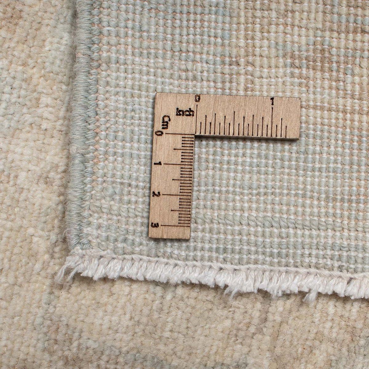 Dette tæppe er fremstillet udelukkende af håndspundet fåreuld. Manuel forarbejdning sikrer, at ulden bevarer sine naturlige egenskaber: den er slidstærk, elastisk og behageligt blød under fødderne.