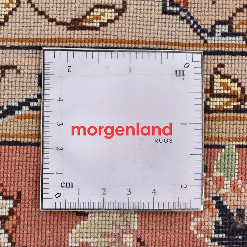 Dette smukke og sjældent fint knyttede persiske tæppe - Tabriz - Premium er fremstillet af korkuld og skinnende silke af høj kvalitet i omhyggeligt og fejlfrit håndarbejde. Tabriz 60 Raj er en af de smukkeste i sin klasse. Dette tæppe skabte det gode ry for den persiske knyttekunst. Det er et meget populært tæppe fra et af de bedste knytteområder i Persien. De har ofte en stor, centralt placeret medaljon med smukke blomstermotiver, som er et typisk orientalsk motiv. Tabriz-tæpper har ofte den supplerende betegnelse Raj. Der skelnes mellem 40, 50, 60, 70 og 80 Raj. Jo højere tallet er, desto finere og tættere er tæppet knyttet. Raj er en kvalitetsbetegnelse og henviser til antallet af knuder på en bredde på ca. 70 mm. På grund af den tætte knudning er tæppet slidstærkt, ufølsomt og velegnet til ekstrem brug. Klassisk elegance og farveoverflod kendetegner dette ædle tæppe. Dette stykke er holdbart og er perfekt som en investering eller langsigtet kapitalinvestering.
