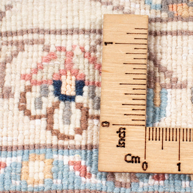Dette fint knyttede persiske tæppe - Tabriz - Royal er lavet af korkuld af høj kvalitet i omhyggeligt og fejlfrit håndarbejde. Tabriz 40 Raj er en af de smukkeste i sin klasse. Dette tæppe skabte det gode ry for den persiske knyttekunst. Det er et meget populært tæppe fra et af de bedste knytteområder i Persien. De har ofte en stor, centralt placeret medaljon med smukke blomstermotiver, som er et typisk orientalsk motiv. Tabriz-tæpper har ofte den supplerende betegnelse Raj. Der skelnes mellem 40, 50, 60, 70 og 80 Raj. Jo højere tallet er, desto finere og tættere er tæppet knyttet. Raj er en kvalitetsbetegnelse og henviser til antallet af knuder på en bredde på ca. 70 mm. På grund af den tætte knudning er tæppet slidstærkt, ufølsomt og velegnet til ekstrem brug. Klassisk elegance og farveoverflod kendetegner dette ædle tæppe.