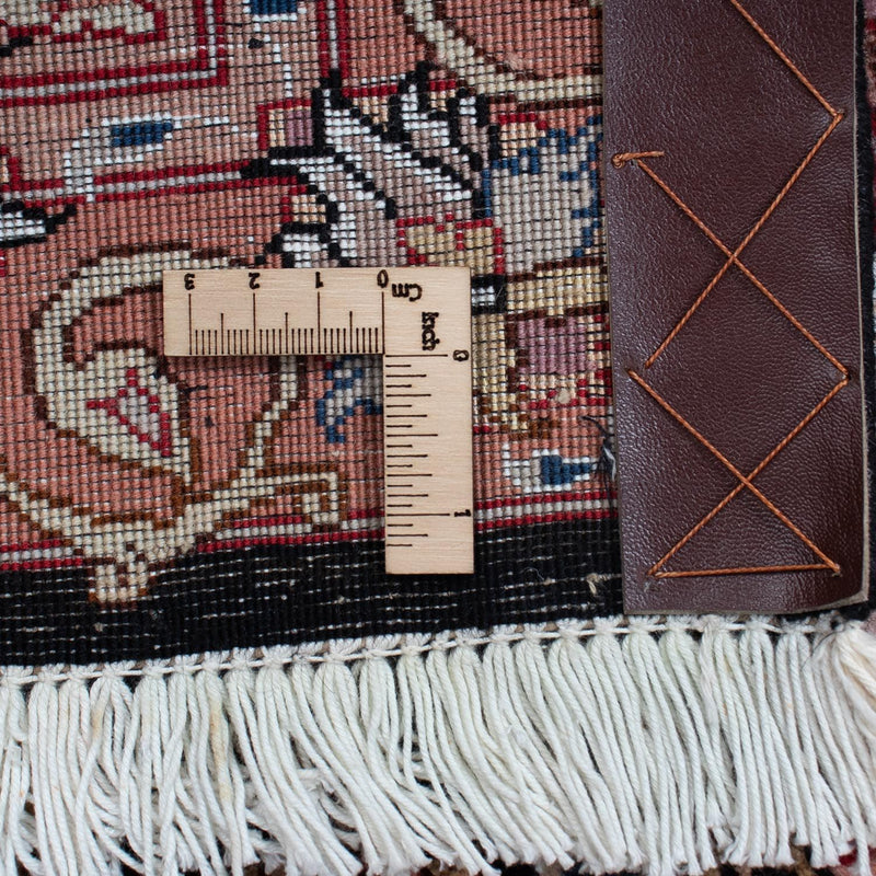 Dette fint knyttede persiske tæppe - Tabriz - Royal er lavet af korkuld af høj kvalitet i omhyggeligt og fejlfrit håndarbejde. Tabriz 40 Raj er en af de smukkeste i sin klasse. Dette tæppe skabte det gode ry for den persiske knyttekunst. Det er et meget populært tæppe fra et af de bedste knytteområder i Persien. De har ofte en stor, centralt placeret medaljon med smukke blomstermotiver, som er et typisk orientalsk motiv. Tabriz-tæpper har ofte den supplerende betegnelse Raj. Der skelnes mellem 40, 50, 60, 70 og 80 Raj. Jo højere tallet er, desto finere og tættere er tæppet knyttet. Raj er en kvalitetsbetegnelse og henviser til antallet af knuder på en bredde på ca. 70 mm. På grund af den tætte knudning er tæppet slidstærkt, ufølsomt og velegnet til ekstrem brug. Klassisk elegance og farveoverflod kendetegner dette ædle tæppe.