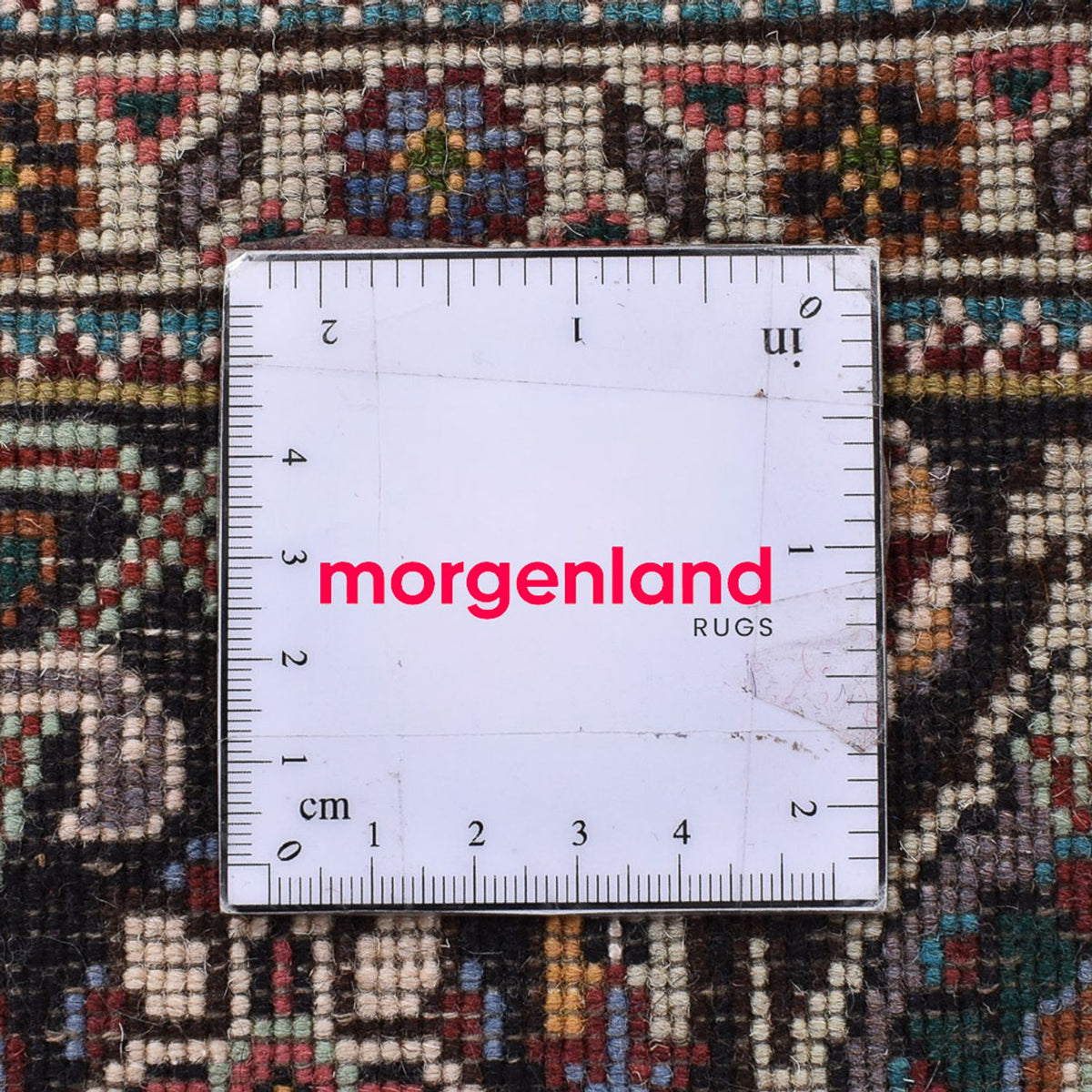 Dette fint knyttede persiske tæppe - Tabriz - Royal er lavet af korkuld af høj kvalitet i omhyggeligt og fejlfrit håndarbejde. Tabriz 40 Raj er en af de smukkeste i sin klasse. Dette tæppe skabte det gode ry for den persiske knyttekunst. Det er et meget populært tæppe fra et af de bedste knytteområder i Persien. De har ofte en stor, centralt placeret medaljon med smukke blomstermotiver, som er et typisk orientalsk motiv. Tabriz-tæpper har ofte den supplerende betegnelse Raj. Der skelnes mellem 40, 50, 60, 70 og 80 Raj. Jo højere tallet er, desto finere og tættere er tæppet knyttet. Raj er en kvalitetsbetegnelse og henviser til antallet af knuder på en bredde på ca. 70 mm. På grund af den tætte knudning er tæppet slidstærkt, ufølsomt og velegnet til ekstrem brug. Klassisk elegance og farveoverflod kendetegner dette ædle tæppe.