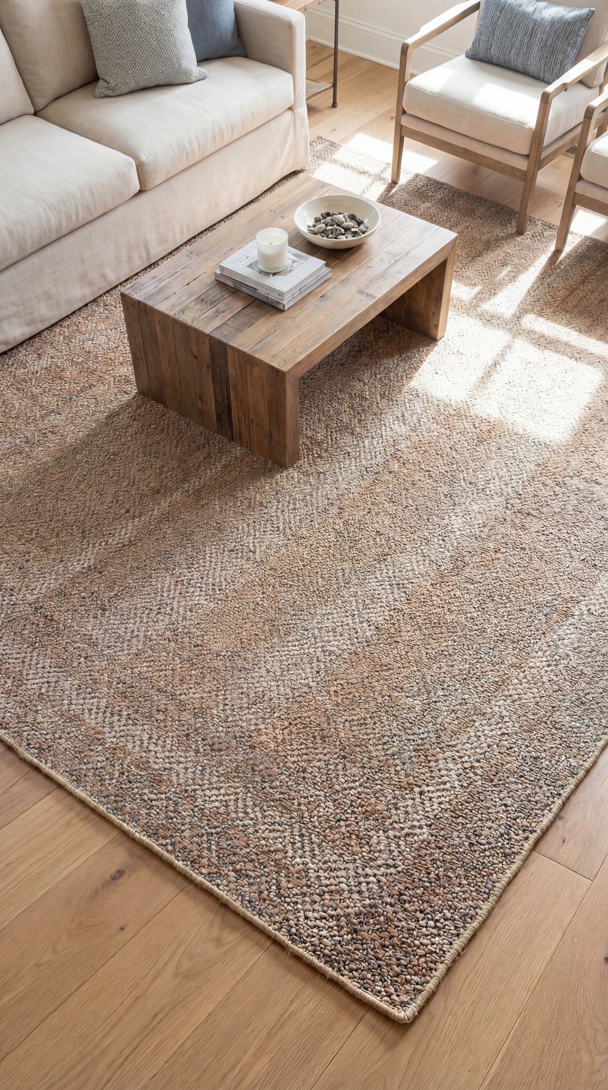 Den håndlavede jutemåtte er et sandt mesterværk, vævet med præcision og kærlighed, designet til at tilføje et naturligt præg til dit hjem. Den er fremstillet af høj kvalitet jute, en økologisk fiber, og kombinerer holdbarhed og skønhed i hver fiber. Den naturlige farve tilbyder alsidighed, der passer perfekt til enhver indretning. Desuden giver dens blødhed under fødderne en komfortabel og indbydende følelse. Denne måtte er ideel til stuer, gange eller soveværelser og skaber en varm og organisk atmosfære i dit rum.