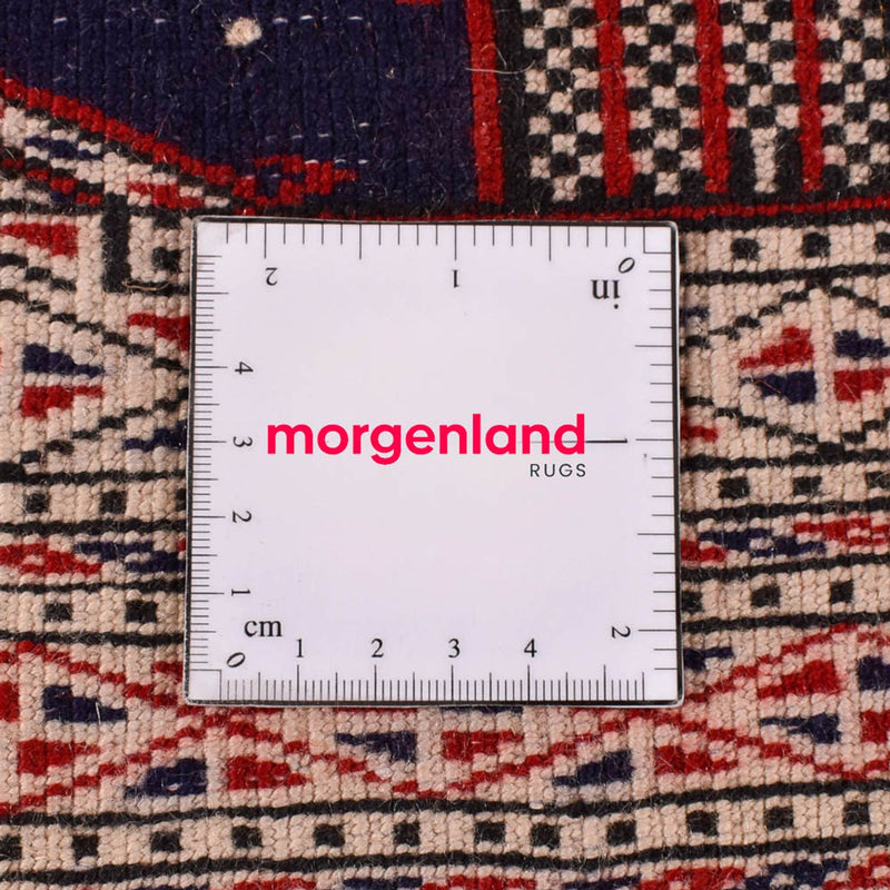 Disse tæpper af høj kvalitet knyttes hovedsageligt i Turkmenistan og i naboregioner som Iran og Afghanistan. Ulden er af meget høj kvalitet, hvilket gør tæppet blødt og derfor meget holdbart. Mønstret består af gentagne Yomut-motiver. De fremherskende farver er røde og lyse beige nuancer. Med købet af et Turkaman-tæppe får du et ægte kunstværk ind i dit hjem, som du vil have glæde af i lang tid fremover.