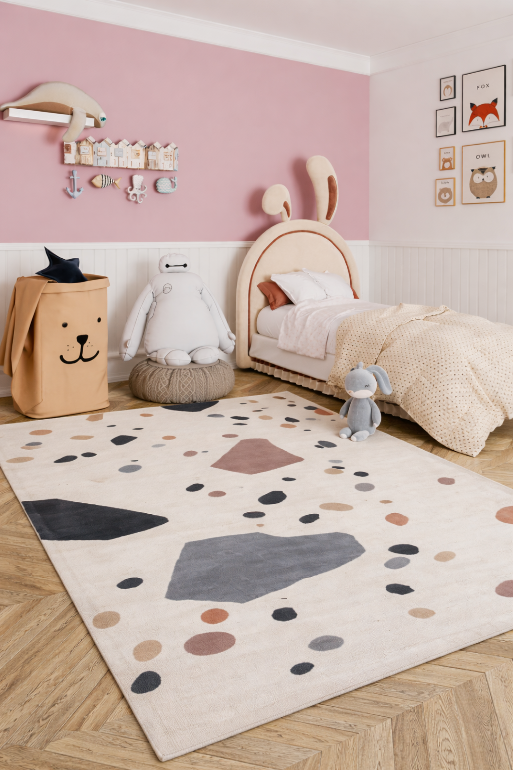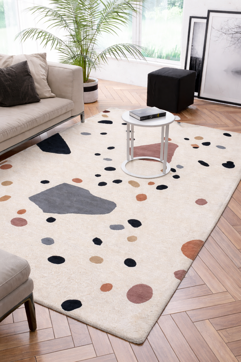 Das Design von BrightMosaic ist inspiriert von der lebendigen Vielfalt natürlicher Steinmuster: unterschiedliche Formen und organisch anmutende Elemente verteilen sich rhythmisch über die Teppichfläche und erzeugen eine harmonische, dynamische Gesamtwirkung. Diese abstrahierte Musterwelt vermittelt Bewegung, Leichtigkeit und eine moderne Ästhetik, die sich mühelos in vielfältige Einrichtungsstile integrieren lässt.